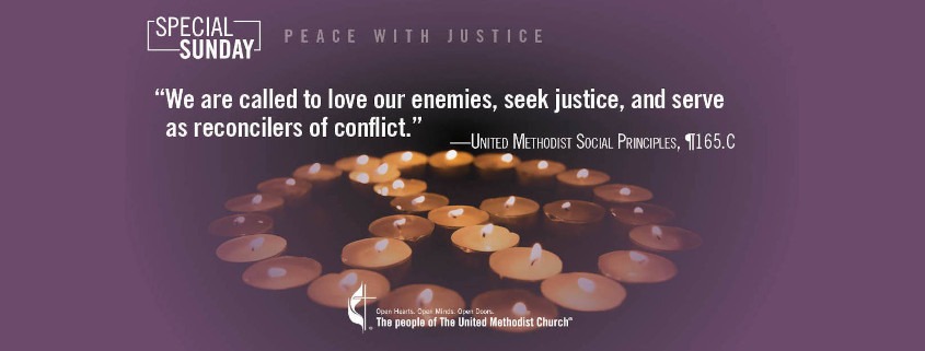 The United Methodist Church uses this special Sunday to speak out for peace and justice. Our Social Principles call us to love our enemies, seek justice, and serve as peacemakers in resolving conflict. We renew our commitment that to live into our mission of transforming the world, we must prioritize collaboration among nations, work to reduce the use and need for weapons, and foster just, equitable and durable solutions to the root causes of conflict.